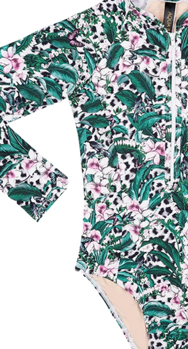 The Lily Long Sleeve One Piece by Aqua Blu Australia is the ideal designer swim piece for your active one. Designed to protect your child from harmful UVA and UVB rays, this one piece boasts a UPF sun protection rating of 50+.