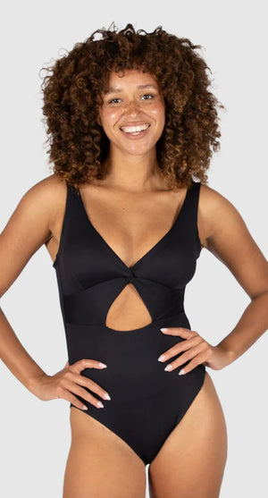 Dive into summer with the Baku Chloro Cut Out One Piece Swimsuit! This playful design features a fun center cut-out with a twisted detail at the dropped neckline that's sure to turn heads poolside. Adjustable straps and soft removable cups let you customize your comfort, while the low back adds a dash of daring. Made from Italian-developed microfibre with lycra extra life and UPF50+ protection, this Aussie-designed and made swimsuit keeps you looking fabulous while the sun stays out!