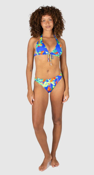 Embrace the spirit of tropical adventure with the Baku Rio Grande Long Line Halter. Designed for A-C cup sizes, it features a soft tie neck and back that allow for easy upsizing and removable cups for personalized comfort. The vibrant emerald green and sunlit gold hues, accented by radiant palm fronds, evoke the lush beauty of exotic landscapes. Perfect for poolside lounging or beach explorations, this halter top combines confident style with a captivating design that makes a bold summer statement.