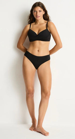 Sea Level Swim’s Cross Front Moulded Cup Underwire Bra offers reliable support and comfort with its underwire design and side boning. Made from eco-friendly regenerated nylon, it combines sustainability with a soft, durable feel. Features include removable booster inserts, adjustable and convertible straps, an adjustable back e-hook, and powermesh support at front and back, ensuring a secure fit up to D/DD cup sizes. This bra is thoughtfully designed to provide both shape and confidence while caring for the environment.
