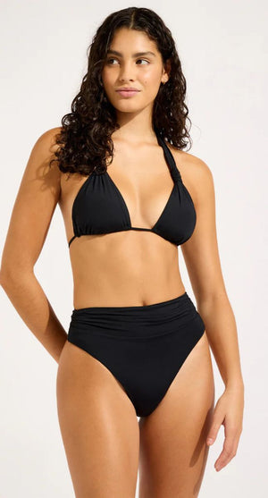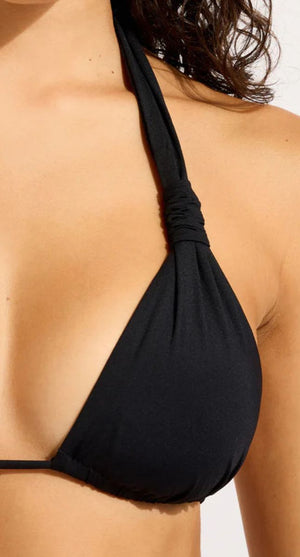 Experience the perfect blend of style and support with the Seafolly Ladies S.Collective Multi Fit Longline Tri. Designed for B-DD cup sizes, it features removable cups for customizable shape and support, while soft ties and a tie-back design ensure a comfortable, versatile fit. Moveable tabs on halter ties to make cup larger or smaller. Enjoy the flattering string triangle look without compromising on comfort or security. Upsize for wider coverage
