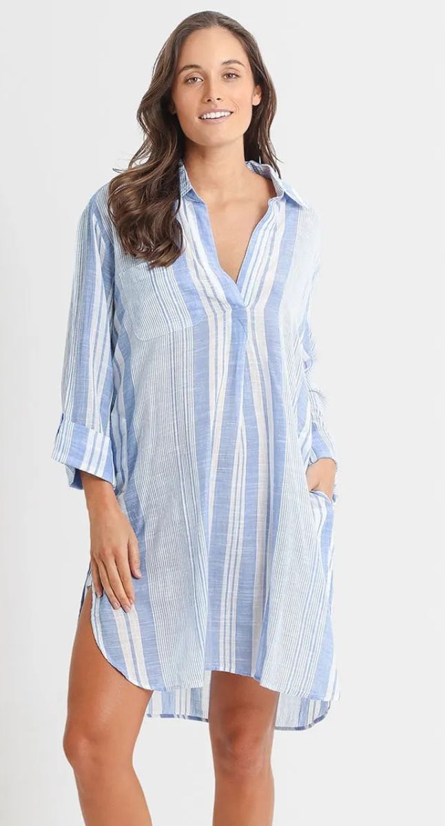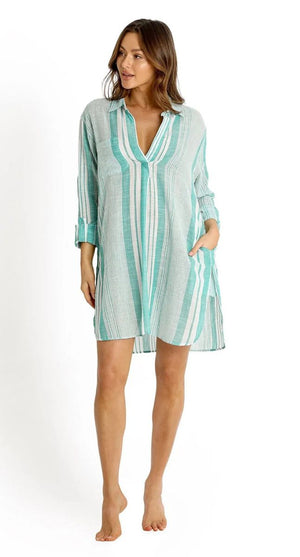 Experience effortless comfort with the Wilder Painters Shirt. This best-selling kaftan-style shirt features a very relaxed fit and super lightweight fabric, perfect for all-day wear. Designed with a collared pull-on style, it includes a short V-neck overlap placket and a front chest pocket for subtle detail. Practical side seam pockets, a back yoke with pleats, and full-length sleeves with roll-up button tabs add versatility. The curved hem with a slight hi-lo finish enhances its easygoing silhouette, making it a supportive choice for your casual wardrobe.