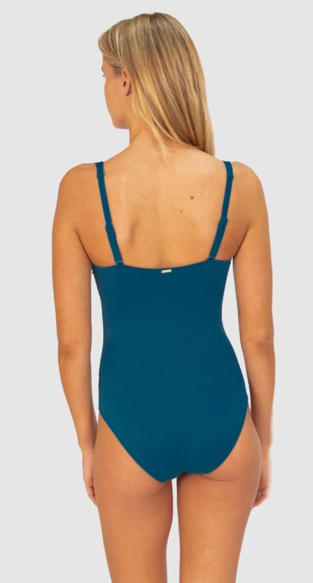 Get ready to make a statement with the Rococco D-E Ring One Piece Swimsuit by Baku. Featuring a flattering dropped neckline with a chic tortoise shell ring, this swimsuit offers hidden underwire, boning and continuous shelf support for a supportive fit. The adjustable straps, tummy control and ruching provide added comfort and confidence. Made with luxurious textural fabric developed in Spain and designed in Australia.
