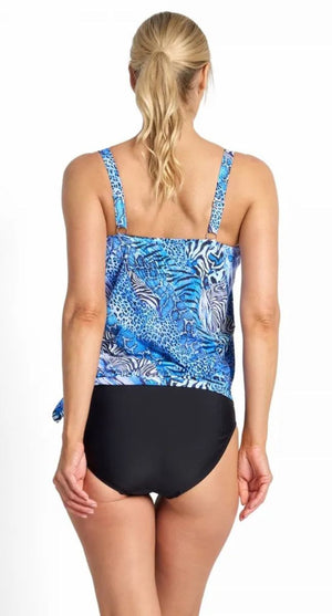 Dive into effortless elegance with the Tigeress Bandeau Blouson Singlet. Crafted from specialised fabric, this lightweight singlet delivers gentle bust compression and support while keeping you cool and dry. The floating shelf bra with soft cups and elastic edge provides a flattering silhouette, while wide adjustable straps and elastic bandeau neckline ensure a secure fit. Bodice gathers and a soft hip band with side tie create a chic blouson shape that's as comfortable as it is stylish. Perfect for making waves in navy.