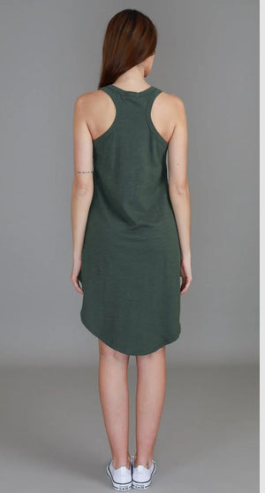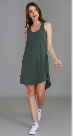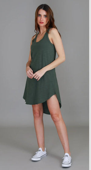 Embrace comfort and style with our Abercombie Dress. Perfect for packing and adventures, this sleeveless cotton jersey dress features a flattering racerback design and low scoop neckline. The hi-lo curved hemline adds a touch of holiday fun to the silhouette, while the soft slub texture provides all-day comfort. True to size and perfect for any casual occasion.