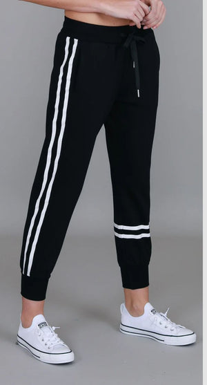 The Jamie 2 Stripe Sweat Jogger offers true-to-size comfort in heavyweight French Terry Cotton that's both soft and stretchy. Featuring an elastic waistband with adjustable drawstring, convenient side pockets, and stylish stripe prints along the sides. The tapered cuffs and slouchy silhouette create a trendy look perfect for casual outings or relaxing at home.
