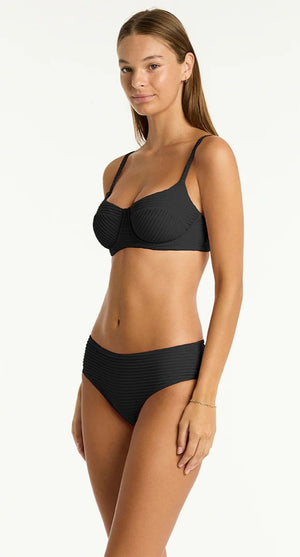 The Spinnaker Balconette Bra features a luxurious textured rib fabric that elegantly sculpts and enhances the silhouette. Designed specifically for fuller C to DD cups, it offers refined side boning and powermesh lining for superior shape and support. Removable soft cups provide customizable depth, while adjustable, convertible straps ensure a precise, comfortable fit. Soft to the touch and comfortably sleek, this bra fits like a second skin, making it an essential piece for effortless summer sophistication.