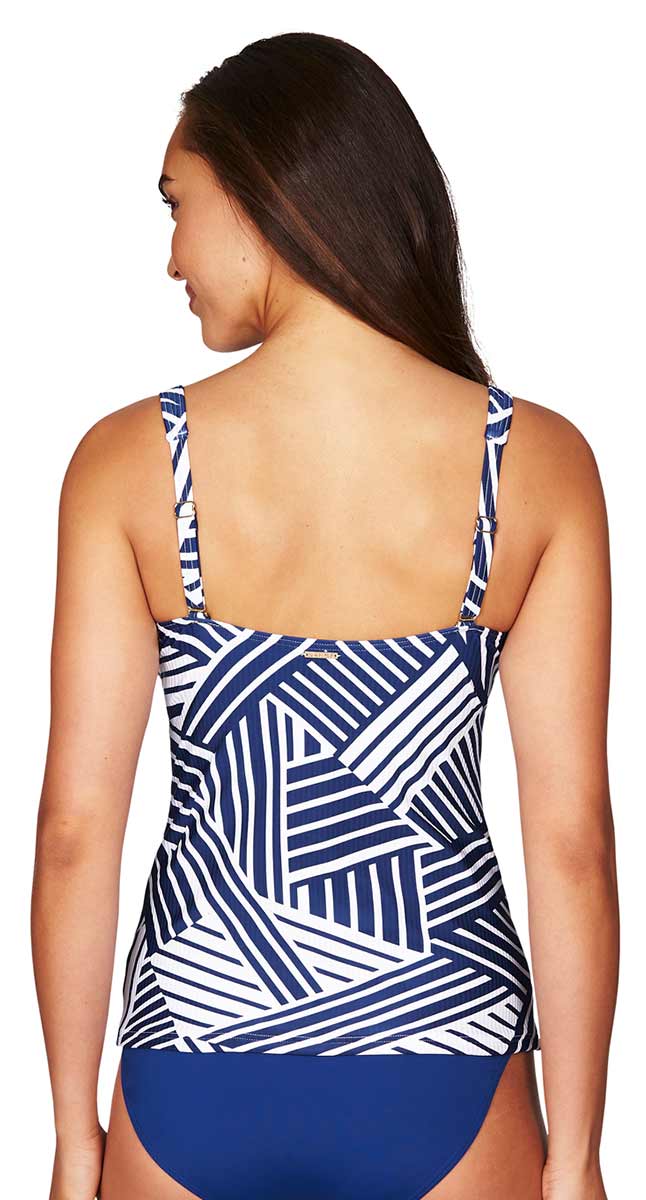 Hot seller alert! This popular slimming tankini is lined with body sculpting powermesh to streamline to tummy, flattering ruched front to soften any lumps and bumps and contour side panelling to shape the waist. The firm moulded cups give a lovely shape to the bust line, adjustable & convertible straps for a customised fit.
