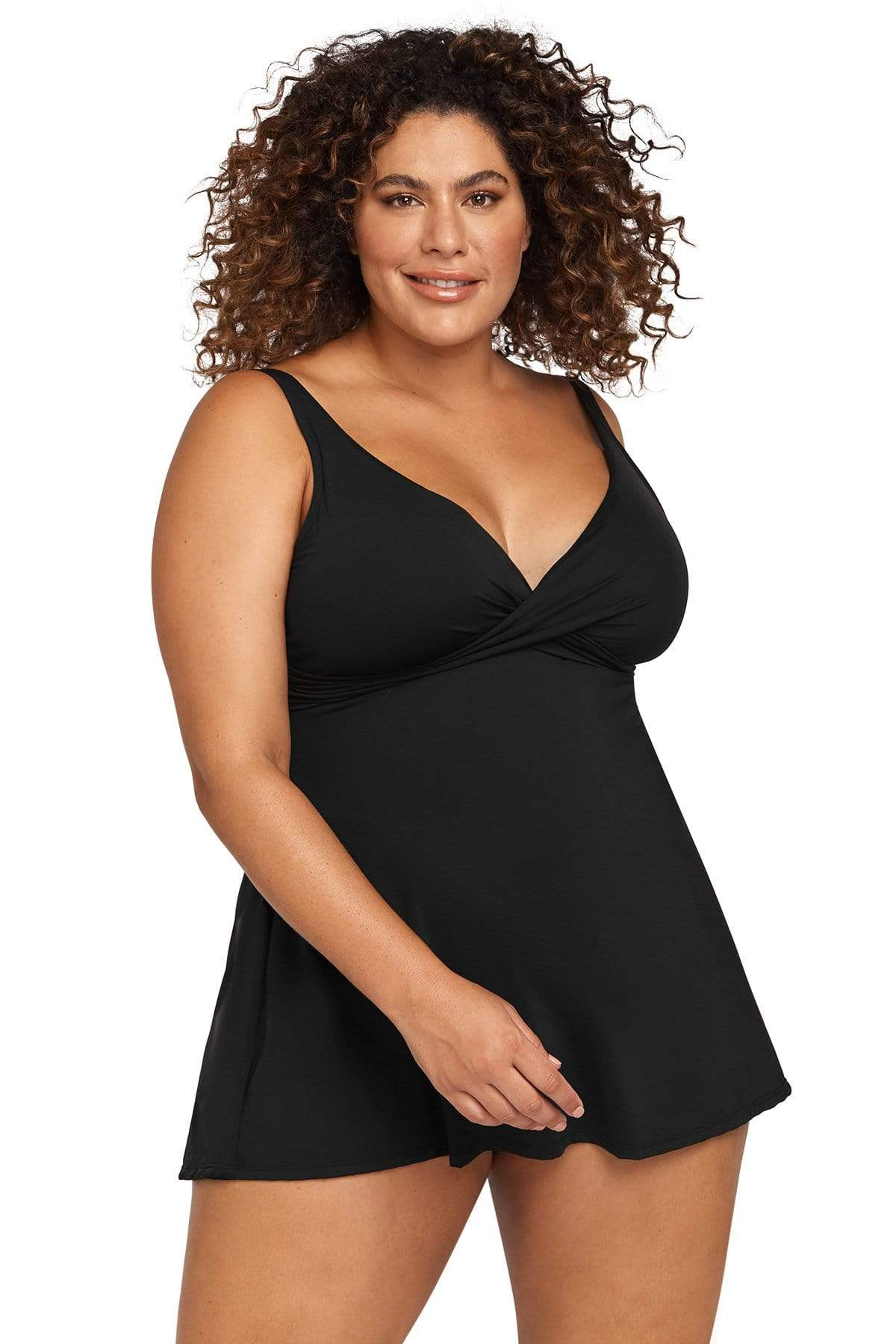 Looking for a flattering and slimming swim dress? You will love the comfort of this body shaping swimsuit that looks like a cute LBD (little black dress). Fully lined front and back with sculpting powermesh to trim the torso, flattering cross over neckline with fixed molded cups to support and shape the bust, wider straps for comfort that stay in place. Milti-fit design suitable for D-G cup fittings (a great option if your bust size changes). Amazing quality at a great price.