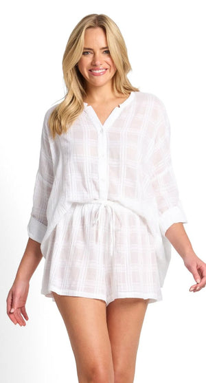 Stay cool and comfortable in the Picnic Drawstring Short, crafted from 100% cotton crushed self dobby fabric for a soft, breathable feel. The elastic drawstring waist ensures a perfect, adjustable fit, while the loose silhouette and short length provide ease of movement and a relaxed style. Ideal for warm days, these shorts combine natural comfort with effortless fashion.