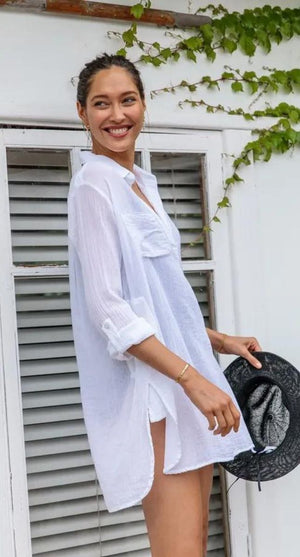 Be a regular at the beach in the Sunseeker Resort Painters Shirt! Whether you're lunching with friends or just chilling in the sand, this shirt will keep you cool and trendy. With a front pocket, generous fit, and long roll sleeves for extra sun coverage, you'll be stylishly protected from the sun's rays. Plus, you can stash your phone and keys in the side pockets for convenience. So why not make this shirt your go-to beach buddy? Sun's out, shirts on!