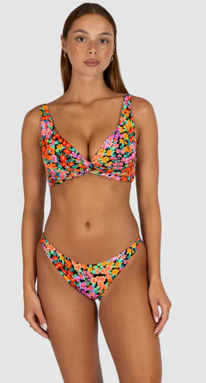 Dare to stand out with the Baku Biarritz 80's Rio Bikini Pant, featuring a bold 80's scoop front and cheeky rio cut that commands attention. Wrapped in a vibrant garden floral print inspired by the French Riviera’s natural allure, this design bursts with sunlit brights and feminine hues that ignite your confidence. Crafted and designed in Australia, it’s the perfect statement piece for those who embrace fearless style and seaside sophistication.