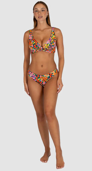 Baku's Biarritz Regular Bikini Pant combines daring style with timeless elegance. Featuring a dipped front and regular coverage, it offers a flattering fit that balances comfort and allure. Crafted from a stretch blend of 91% polyamide and 9% elastane, this bikini bottom moves with you effortlessly. Its vibrant garden floral print, inspired by the French Riviera’s sunlit blooms, brings a bold splash of color and sophistication to your swimwear collection. Designed and made in Australia, it’s perfect for those who want to stand out with confidence by the seaside.