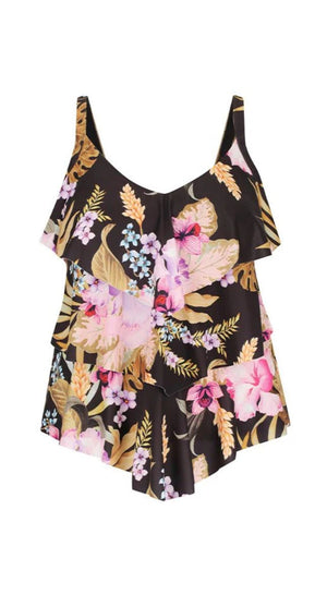 The Capriosca Caribbean Tiered Frill Tankini Top combines style with practical support for a confident swim. Featuring a striking V-shaped neckline and eye-catching three-tier frill design, this chlorine-resistant tankini top is crafted from 100% polyester for durability. The shelf bra and moulded cups provide excellent support and shape, while adjustable and convertible straps offer customizable comfort for all-day wear. Ideal for B-G cup sizes, this tankini top is designed to make you feel supported and beautiful in the water. Sold separately—pair with your choice of matching bottom to complete your swimwear look.