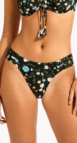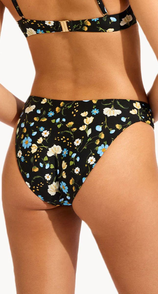 Elevate your swimwear collection with the Modern Romance High Leg Ruched Side Pant in classic black. Designed with a flattering mid-rise waist and ruched sides, it enhances your silhouette while providing comfortable medium coverage. The raised legline elongates your legs for a sleek, confident look. Available in sizes 8-14, this pant combines style and comfort effortlessly for your perfect beach or poolside outfit.