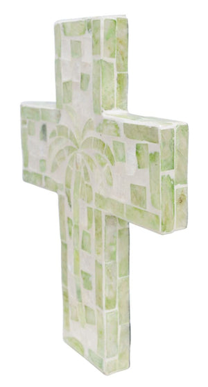 Medium Palm Green Cross – Coastal Capiz Shell Wall Décor