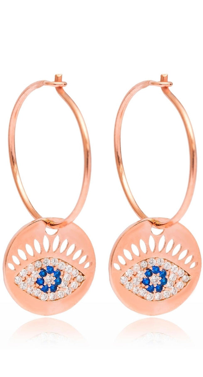 aegeanblue blue eye hoop earrings handmade in 925 sterling silver
