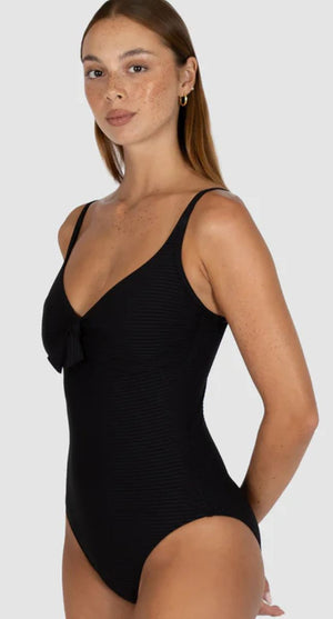 The Baku Positano D.E Underwire One Piece Swimsuit blends timeless elegance with advanced support. Crafted from premium soft rib fabric sourced from Spain, it offers hidden underwire and shelf support for a flattering shape. Fully lined with inner cup Lycra, adjustable and convertible straps provide a customized fit, while tummy control enhances silhouette confidence. Finished with a soft tie fashion detail, this swimsuit is designed and made in Australia, perfect for those seeking sophistication and comfort in swimwear