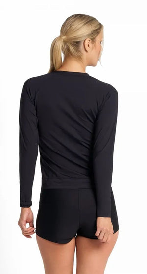 Dive into sun safety without the fuss. Our Cosmopolitan Zip Rashie combines lightweight protection with effortless style—no bulky rash guard vibes here. Featuring UPF 50+ certification from ARPANSA, it shields you from harmful UVA and UVB rays while the open-ended front zip, full-length raglan sleeves, and soft neck band keep you comfy all day. Generously cut for easy movement, this is the rashie that actually feels as good as it looks.