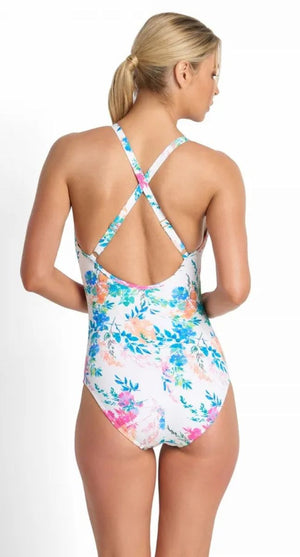 Meet the Fresia Hi Neck Cross Strap—your new go-to one piece that's as fabulous as it is functional! Crafted with specialised Powernet fabric, this beauty delivers serious smoothing power where you need it most, while the lightweight mesh keeps you cool and comfortable all day long. Love the thoughtful details? We do! Fixed soft bra cups, mastectomy friendly pockets, and an elastic shelf bra provide the support you deserve. The adjustable cross straps and low scoop neckline let you customise your fit, while front ruching adds a cheeky touch of style. Breathable, shape-retaining, and designed to make you feel confident—this is swimwear that works as hard as you do.