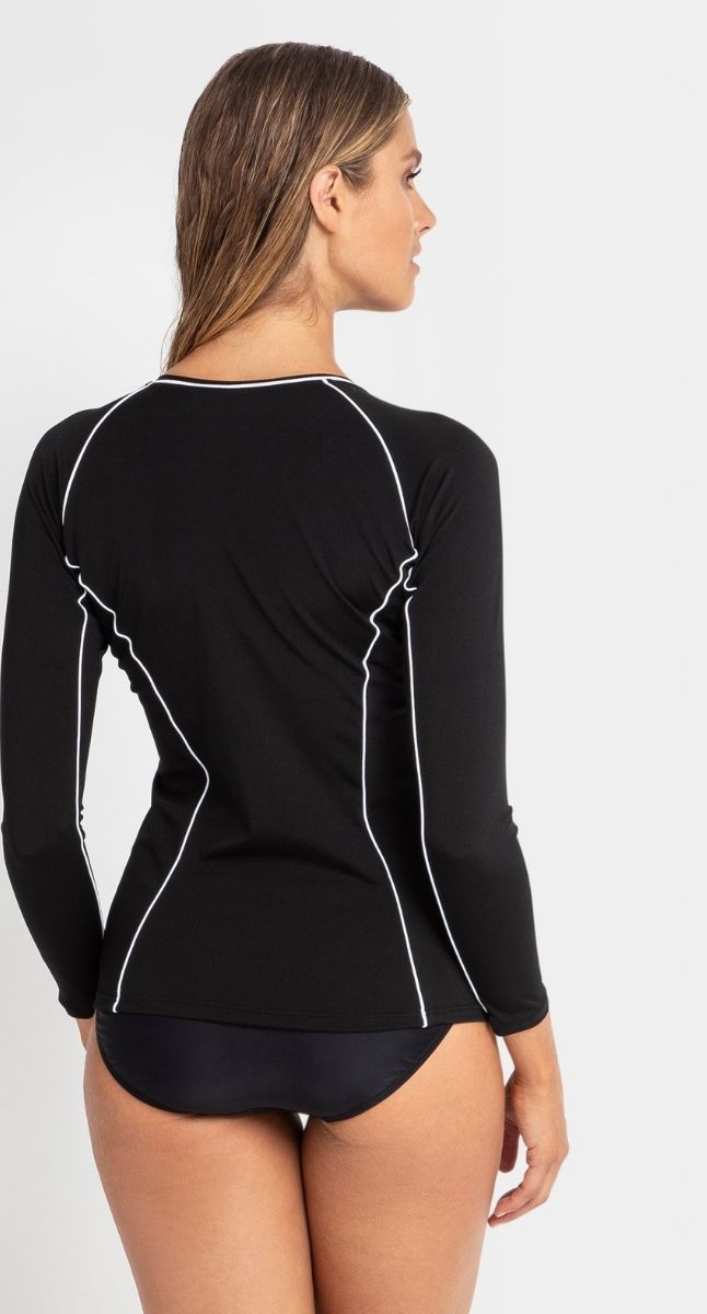 UV 50+ Sun protection, chlorine resistant and eco friendly! This fresh new style will become your all round favourite rash vest - so many uses. Featuring removable soft cups to shape the bust, smooth plastic full zip, generous body length, recycled nylon fabrication with quick dry and chlorine resistant properties for durability and long wearing style.